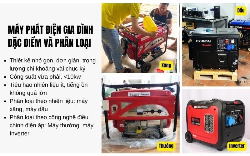 Máy phát điện gia đình - Đặc điểm và phân loại