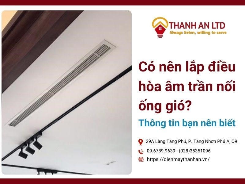 Điện máy Thành An là cửa hàng bán điều hòa âm trần nối ống gió có uy tín trên thị trường với kinh nghiệm hơn 5 trong lĩnh vực điện máy. Ngoài ra, công ty còn phân phối các dòng máy lạnh khác như máy lạnh âm trần giá rẻ, máy lạnh Multi, máy lạnh trung tâm VRV với nhiều thương hiệu khác nhau như Daikin, LG, Mitsubishi Heavy,...