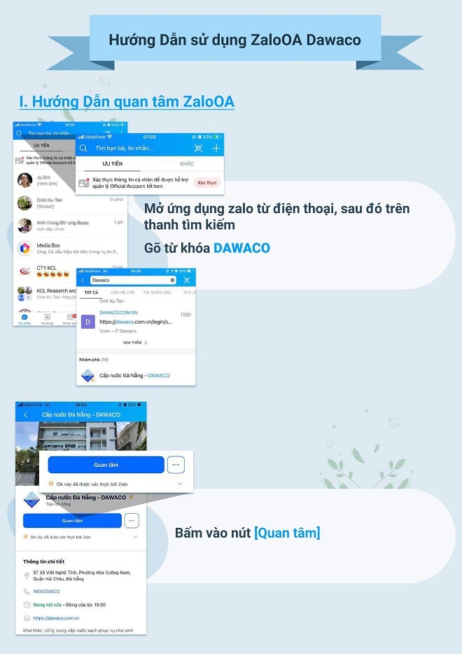 Bước 1: Quan tâm vào tài khoản Zalo của Dawaco: