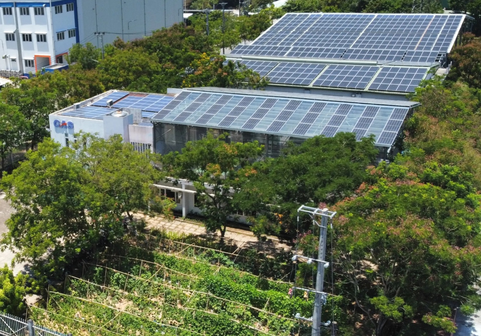 Tại trụ sở chính của Công ty TNHH Năng lượng CAS (CAS Energy) ở đường số 2, Khu công nghiệp Hoa Cầm (phường Cẩm Lệ), toàn bộ mái tòa nhà chính được lắp đặt các tấm pin năng lượng mặt trời; nhà xưởng được bố trí sản xuất điện mặt trời áp mái kết hợp nông trại nhỏ; khoảng sân nhỏ phía trước làm vườn sản xuất nông nghiệp và bao quanh khuôn viên là hàng cây bóng mát.