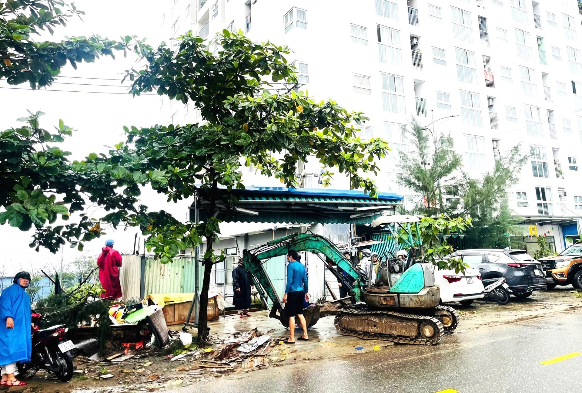 Tại phường Liên Chiểu, Trung tâm Cung ứng dịch vụ sự nghiệp công phường phối hợp với công an và các lực lượng chức năng ra quân tháo dỡ toàn bộ công trình, hàng quán, mái che, vật dựng lấn chiếm vỉa hè, đất công tại đoạn từ ngã ba đường Lạc Long Quân - Âu Cơ đến chợ Thanh Vinh.