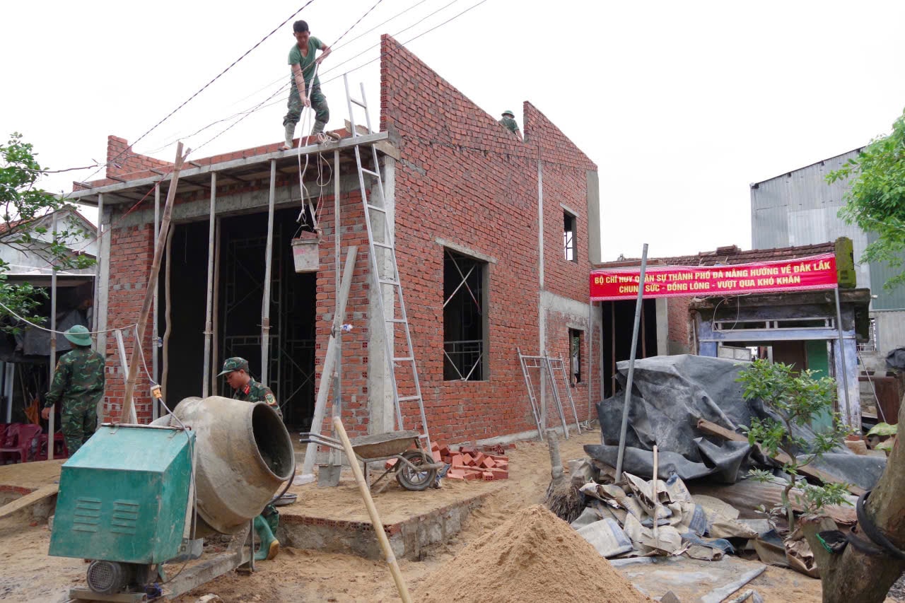 Ban đầu Bộ Chỉ huy Quân sự Đà Nẵng điều 100 quân vào Đắk Lắk tạo thành 3 đội thợ dựng nhà giúp dân. Đến ngày 17/12/2025, số lượng nhà dựng mới và nhu cầu sửa chữa tăng cao ở địa phương, 7 đội thợ là lính Đà Nẵng đã và đang đẩy nhanh tiến độ, không ngại khó “làm ngày không đủ, tranh thủ làm đêm”.