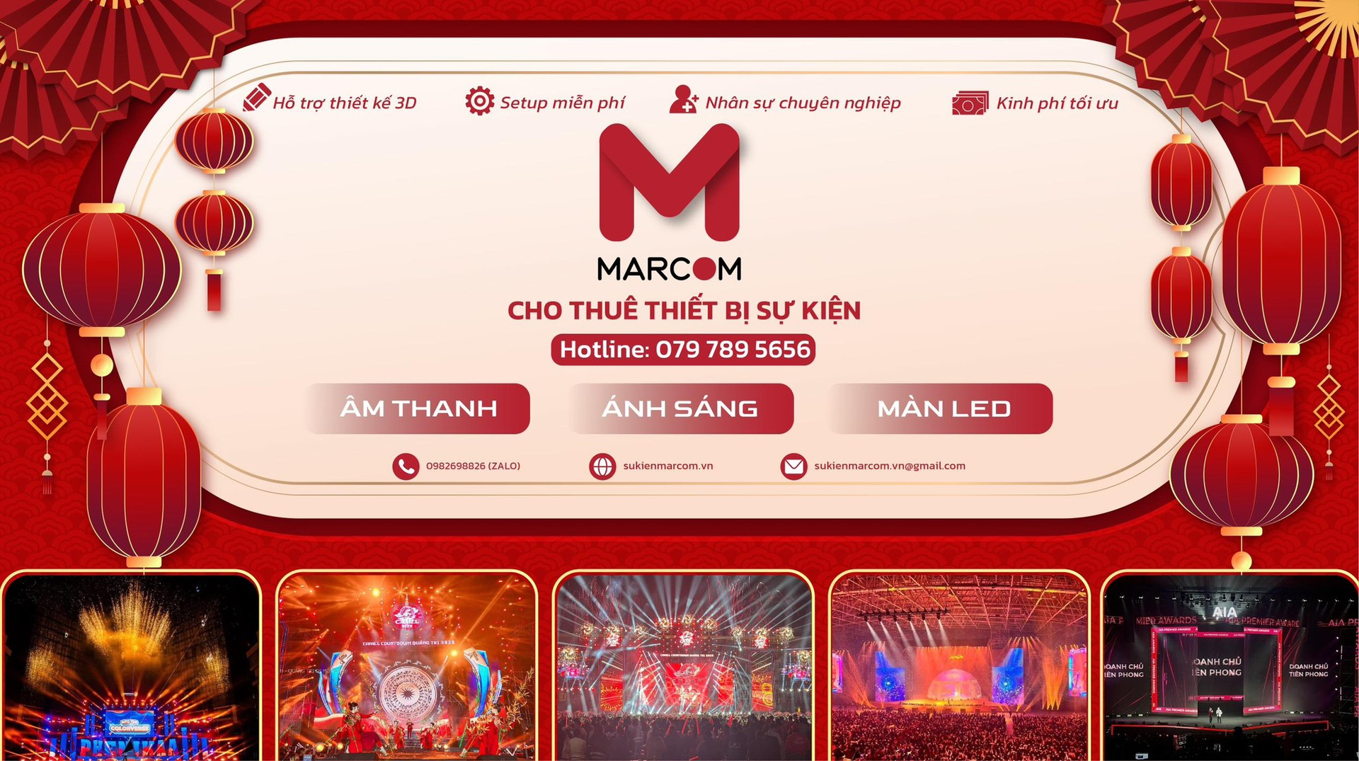 - Dịch vụ trọn gói chuyên nghiệp: Ngoài âm thanh, Marcom còn cung cấp ánh sáng sân khấu, cho thuê màn hình LED, giàn khung, sân khấu di động… giúp khách hàng tiết kiệm thời gian, công sức khi tổ chức.