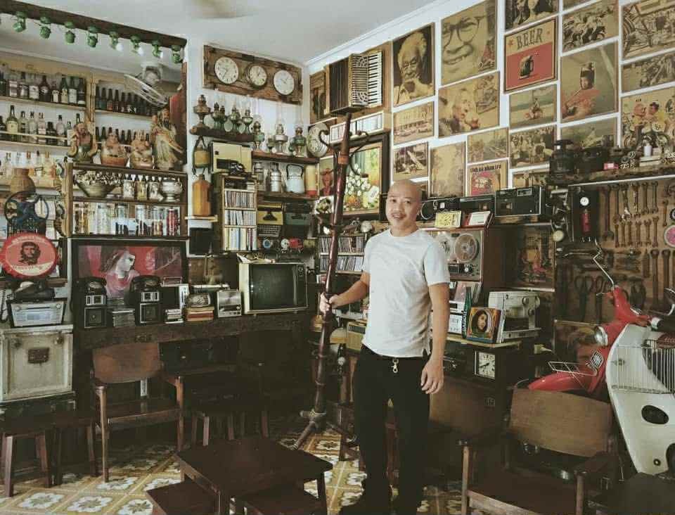 Nguyễn Ngọc Trường, thế hệ 8X, nhiều năm làm việc trong ngành kiến trúc - xây dựng. Anh bén duyên với Nối Coffee từ một niềm đam mê… chẳng ai nghĩ tới: sưu tầm đồ vật cũ, có tuổi đời từ 30 đến 40 năm trở lên. Trong mắt Trường, những chiếc máy may, máy cassette, hay thậm chí là hộp đạn, vỏ bom thời chiến tranh… đều chứa trong mình những câu chuyện không nên để mất đi.