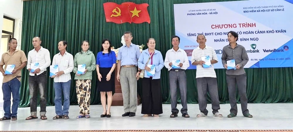 BHXH cơ sở Cẩm Lệ vừa phối hợp với UBND xã Bà Nà tổ chức chương trình trao tặng thẻ bảo hiểm y tế (BHYT) cho người dân có hoàn cảnh khó khăn. Đây là hoạt động thiết thực, thể hiện sự quan tâm, trách nhiệm của ngành BHXH cùng các đơn vị đồng hành trong chăm lo an sinh xã hội, góp phần giúp người dân tiếp cận dịch vụ chăm sóc sức khỏe, giảm bớt gánh nặng chi phí y tế, hướng tới mục tiêu bao phủ BHYT toàn dân.