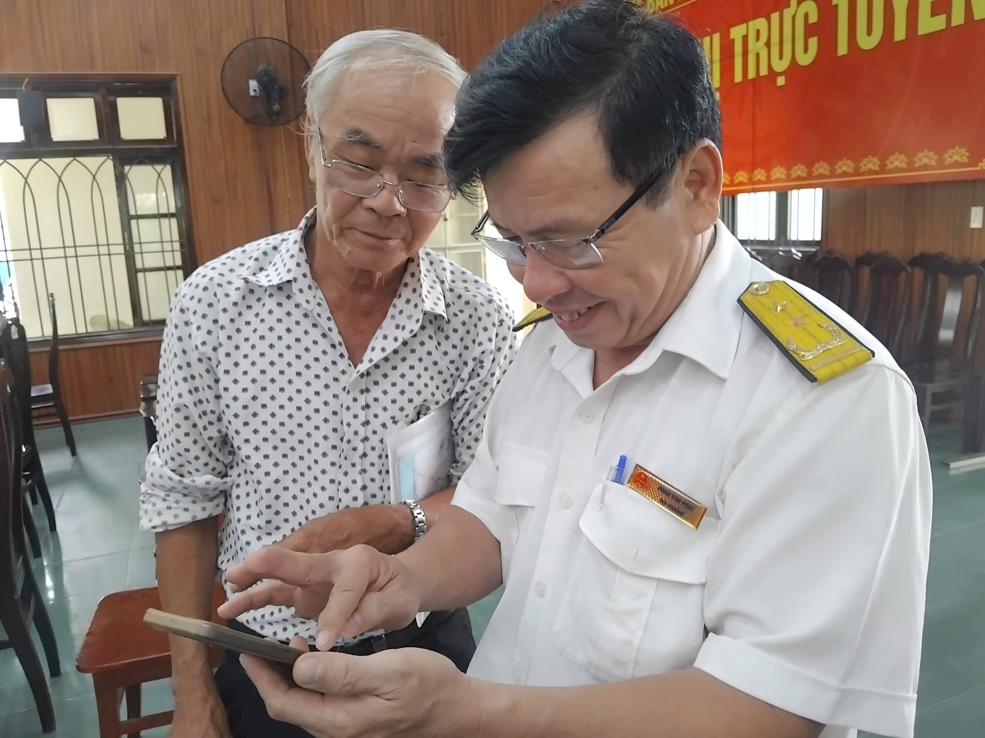 Cán bộ thuế đã hướng dẫn cài đặt ứng dụng eTax Mobile trên thiết bị di động, đăng ký tài khoản, hướng dẫn nộp thuế, liên kết ngân hàng và thực hiện thao tác giao dịch trực tuyến với cơ quan thuế.