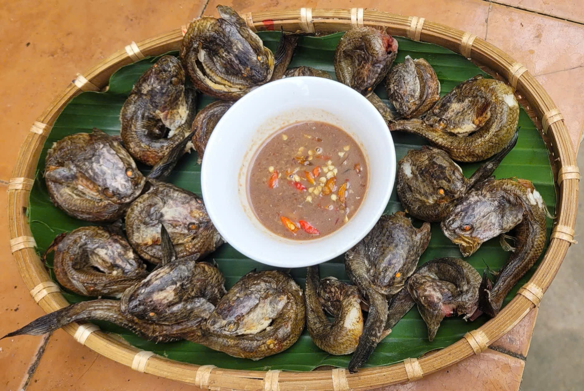 Khi cá giòn rụm, chúng được tách ra khỏi trui rồi giằm mắm cái bà Mai ở chợ Thơm thì không gì sánh bằng. Người ăn không chỉ thưởng thức sự tinh tế, cân bằng nhiều hương vị mà còn cảm nhận được mùi rơm rạ, khói bếp của đồng quê.