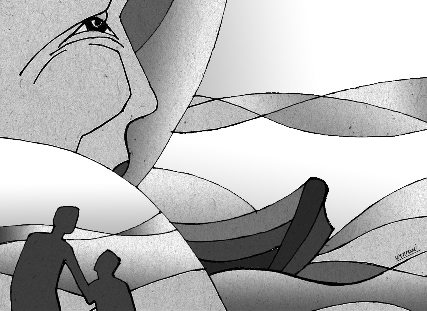 Giữa bức tranh tối sáng, Nhàn bỗng thấy cha cũng mong manh như con đò nhỏ lênh đênh trên dòng sông đời bất tận.
