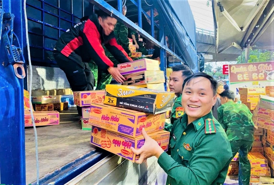Tại các điểm bốc xếp, hình ảnh những người lính biên phòng mồ hôi nhễ nhại, miệt mài giữa núi hàng hóa cứu trợ để lại nhiều ấn tượng cho người dân và các tình nguyện viên. Từng thùng hàng được chuyển đi mang theo tình cảm gửi đến những nơi đang oằn mình trong lũ.